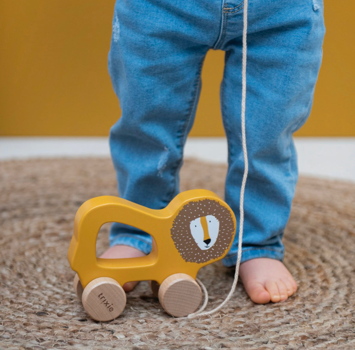 This friend will accompany your little one on its very first steps! With the cotton string children can pull their favourite animal along on a walk. The opening in the middle makes it easy for children to grasp the toy and push it around. The pull along toy is made of 100% FSC® certified wood. All paints on this product are water-based, safe for children and non-toxic. The pull along toy is available in many different animals.